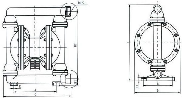 【QBY型工程塑料氣動隔膜泵】安裝尺寸: