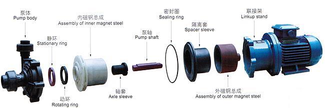 CQF型工程塑料磁力驅動泵結構爆炸圖: