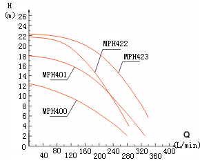 【MP型塑料微型磁力驅動循環泵】性能曲線圖: