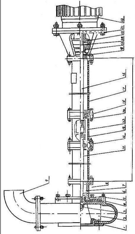 7、泵軸上裝上鍵和從動聯軸器,在電機軸上裝上鍵與主動聯軸器,然后將電機與電機座螺栓固定。裝好后要求與主動聯軸器與從動聯軸器之間軸向間隙應為1~1.5毫米。