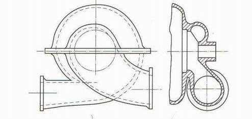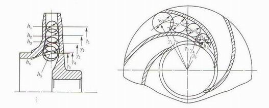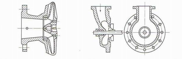 螺旋形吸入室如圖3-17所示,其優點是液體進入葉輪流動情況較好,速度比較均勻,但液體進入葉輪前已有預旋,對比轉數大的泵,揚程損失比較明顯,雙吸單吸泵和和水平中開式多級泵一般采用此種結構。