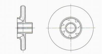通常有鑄造加工而成。閉式葉輪有前蓋板、后蓋板,葉片與 輪轂等組成。半開式葉輪無前蓋板開式葉輪無前后蓋板,葉輪中的葉片有圓柱形(單向彎曲)和扭曲型(雙向彎曲)之分。閉式葉輪的平面投影如圖3-11所 示。葉輪流道面積要求變化均勻,流道中心是切圓形的連線。葉輪結構如圖3-12所示。