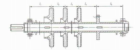 泵軸與葉輪等組裝在一起后,用鎖緊母固定,成為高速旋轉的轉子。在泵組裝前要進行小裝,檢查轉子各位的徑向跳動量,如果過大,泵在運行中就容易產生振動和研磨,應該設法消除,對于分段多級泵,需對轉子部件做組裝檢查并進行動平衡檢驗:對于懸臂泵,需對托架部件做組裝檢查,其裝配圖如圖3-13、圖3-14所。