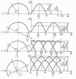往復(fù)泵瞬時流量不均勻系數(shù)&Q1、&Q2與缸數(shù)、作用數(shù)、