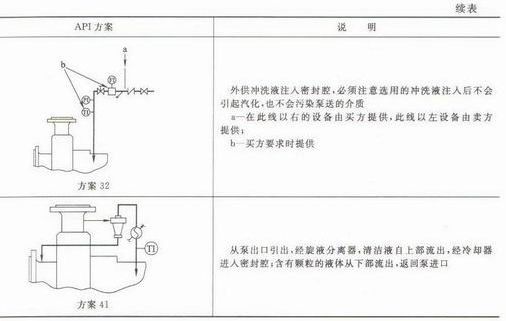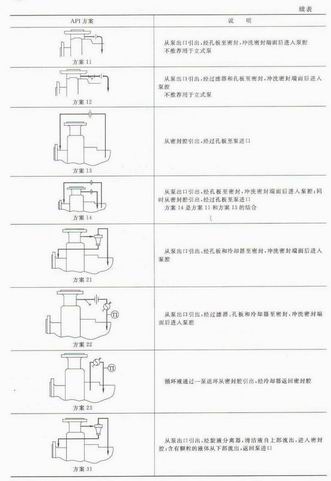 單端面機械密封、無壓雙密封的內測密封的密封輔助管路系統的選擇見表1-24,節流襯套、輔助密封裝置和雙密封的輔助管路系統的選擇見表1-25.