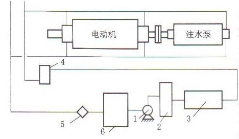 潤滑系統分為兩種流程,一種是集中潤滑流程,即一套潤滑設備供幾臺注水泵機組潤滑:另一種是一套潤滑設備只供一臺注水機泵潤滑。此外,還有采用注水泵和注水電機分別由潤滑系統潤滑的流程,潤滑系統主要包括:油泵、油箱、冷卻粗濾器、板框式精濾器、事故油箱、壓力表等,如圖2-10所示。