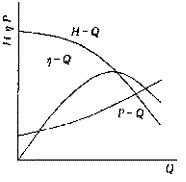 1.1 離心油泵的性能 揚程-流量、軸功率-流量和效率-流量曲線表示離心油泵的水力性能,一般用只能采用實驗的方法才能得到性能,見圖1。本文試圖分析出*優工況的滑移系數、水力效率、容積效率、機械效率和水力損失系數等參數。