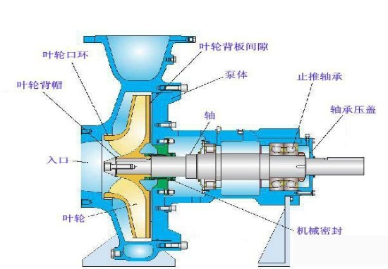 離心泵在工作時,依靠高速旋轉的葉輪,液體在慣性離心力作用下獲得了能量以提高了壓強。離心泵在工作前,泵體和進口管線必須灌滿液體介質,防止氣蝕現象發生。當葉輪快速轉動時,葉片促使介質很快旋轉,旋轉著的介質在離心力的作用下從葉輪中飛出。泵內的水被拋出后,葉輪的中心部分形成真空區域。一面不斷地吸入液體,一面又不斷地給予吸入的液體一定的能量,將液體排出。離心泵便如此連續不斷地工作。