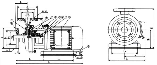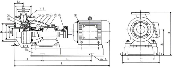 S型玻璃鋼離心泵結構圖及安裝尺寸